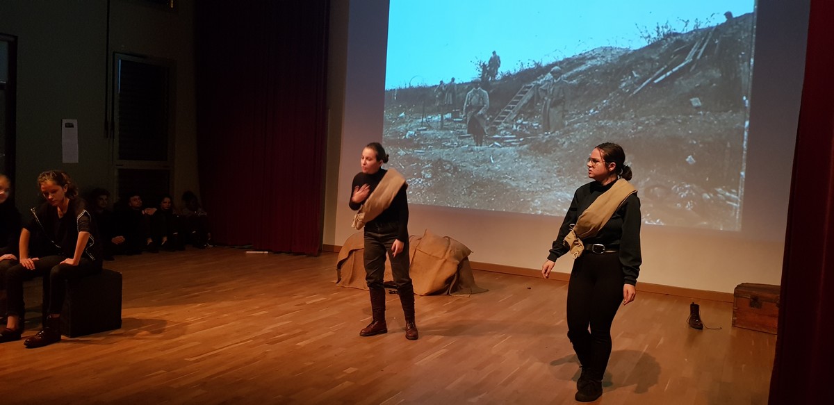 Les élèves de Cécile Sempéré-Brun, Corinne Lamic et Sabine Bellon ont rendu un hommage un très émouvant aux Poilus vendredi 9 novembre sous la forme d’une pièce de théâtre entrecoupée de lecture de lettres de soldats français, anglais et allemands. Raydio était sur place pour enregistrer la pièce et photographier l’événement.