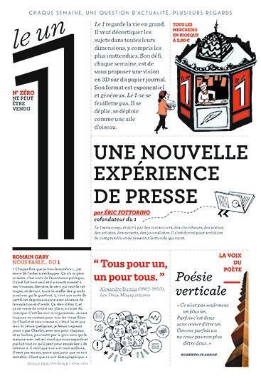 Ce journal est connu pour son format unique, tu pourrais décorer ta chambre avec les journaux Le 1 car il se déplie en format poster. Tu sais qu’aujourd’hui quinze personnes travaillent dans ce journal. Parmi eux nous pouvons citer : Eric Fottorino (Directeur de le Publication), Nathalie Thiriez (Directrice Artistique), Laurent Greilsamer (Conseiller Editorial), Julien Bisson (rédacteur en Chef). Le nombre de journalistes travaillant pour Le 1 n’est pas clairement spécifié, car pour chaque sujet abordé le journal fait appel à des chercheurs, des artistes, poètes ou encore écrivains, pour avoir des points de vue différents.