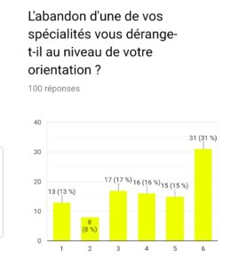 Enfin, les résultats sont assez mitigés au niveau de l’abandon d’une spécialité en première.