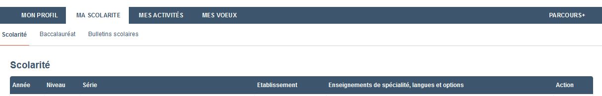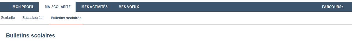 -Dans cette même rubrique, rends-toi dans l’onglet « Bulletin scolaires » : il doit y avoir tes 3 bulletins de première et les deux premiers bulletins de terminale. Mais pas de panique ! C’est ton établissement qui les saisit automatiquement fin mars/début avril, néanmoins il peut être judicieux de vérifier par toi-même avant le 8 Avril !