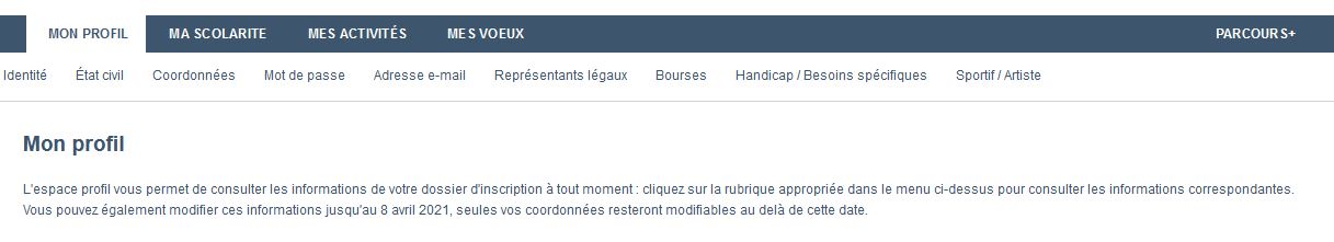 -Tout d’abord, rends-toi dans la rubrique « Mon profil » et vérifie qu’une erreur ne se soit pas glissée dans tes informations personnelles : identité, état civil…