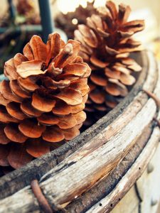 Attachez les pommes de pin en les espaçant de 8cm les unes des autres. Vous pouvez les décorer si vous voulez. Accrochez la guirlande à l’extérieur. Si les pommes de pin se ferment, il va y avoir du mauvais temps mais si elles s’ouvrent, il fera beau !(Pour savoir comment, voir « Sciences Automne »)