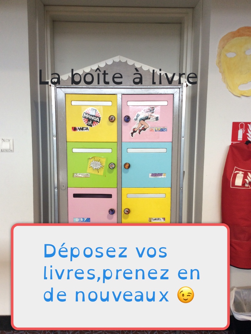 La boite à livre est un projet de notre collège, crée par des élèves et encadré par le professeur documentaliste et une maman d’élève.