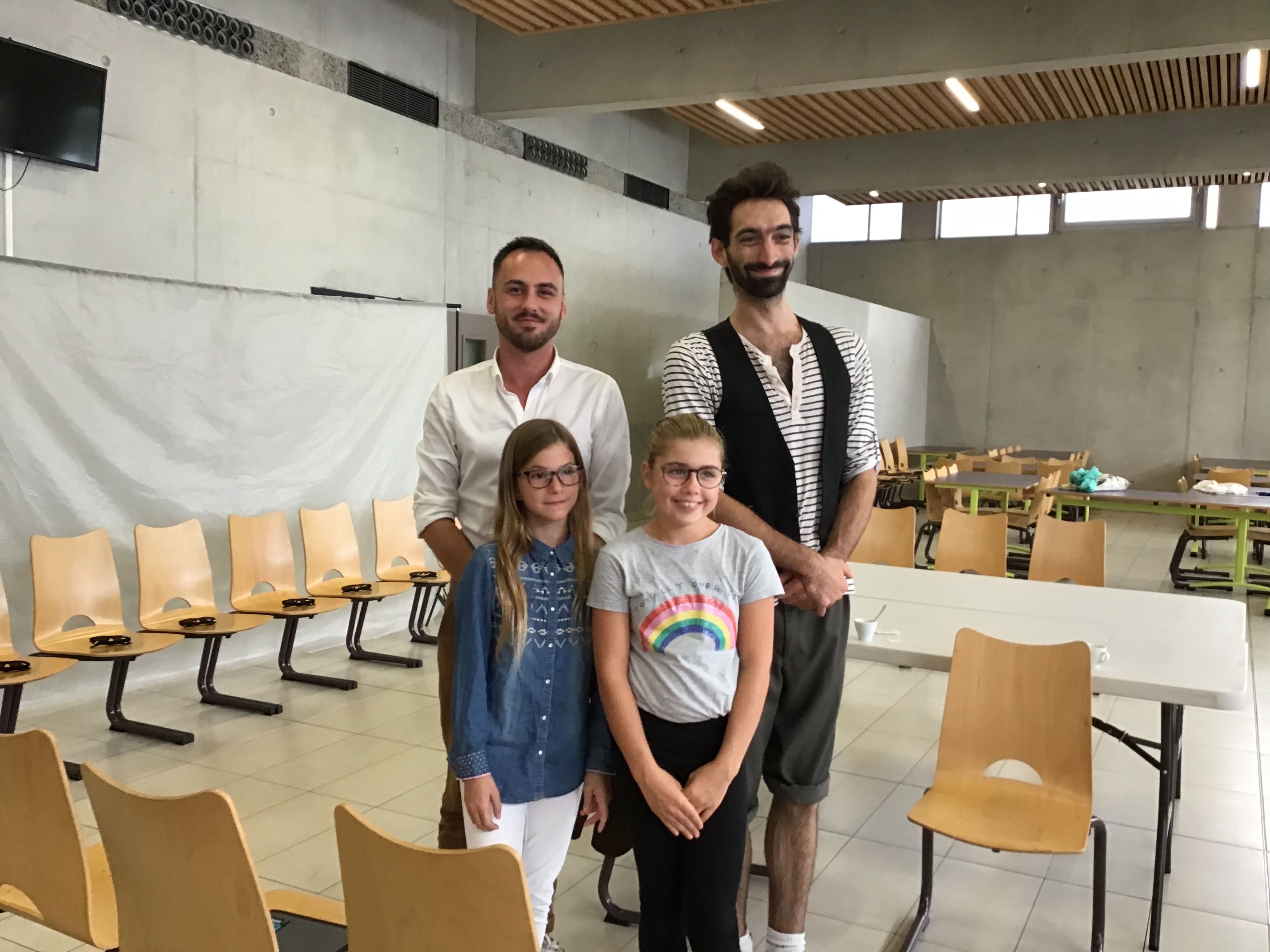 J’ai débuté le théâtre il y a 6 ans, en 2012. J’avais joué la putain de l’oayo ( rires) Félicien en rigolant : « voilà ! Fallait pas demander! » . Guillaume: « J’ai toujours été comédien sans le savoir, je fais du théâtre depuis que j’ai 5 ou 6 ans ». Je travaille dans les compagnies , le collectif la machine avec Félicien et les affreux, à la création d’évènements monstrueux. J ‘ai voulu présenter une pièce de théâtre parce que comme l’a dit Félicien, il faut d’abord avoir l’envie d’emmener le théâtre là où il n’y est pas, de venir présenter une pièce. Le but est aussi de vous apprendre le théâtre à vous les élèves, de vous apprendre à le connaître, et à comprendre le métier de comédien. Ma pièce préférée est le manifeste de la vie singulière de Félicien Chauveau. (rires)