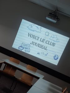 Avec Valentine, on est super fières de nous car on a fait une bande annonce et un film pour présenter le club journal. Comme on fait le club journal, on est restées au CDI dans la classe avec d’autres élèves du club, avec Mme Rouard, professeur documentaliste qui anime le club journal. On a expliqué aux visiteurs ce qu’on faisait.