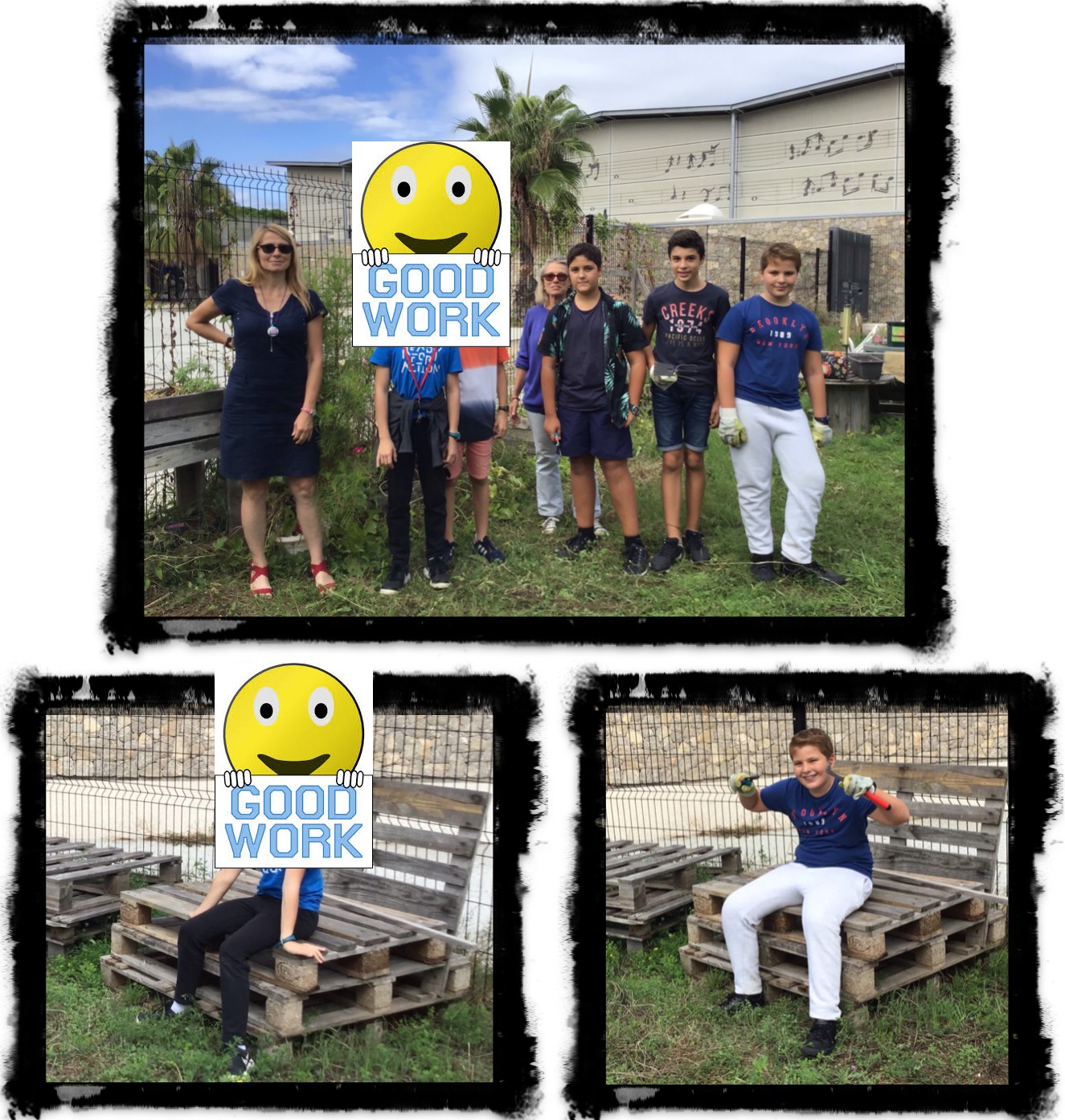 Au niveau des nouveaux meubles, nous avons installé une table pour faire des bilans en fin de séance ou pour des travaux pratiques. Nous avons pu obtenir 2 parasols (il fait vite très chaud dans le jardin ) et nous avons acquis plus de matériel grâce aux dons de plusieurs parents (merci à eux!!).
