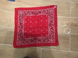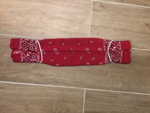 1. Prenez un bandana (ou foulard, serviette…) et des élastiques